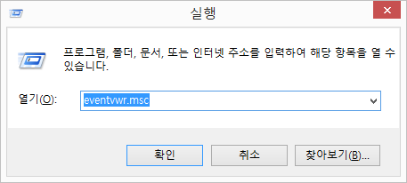 1. '윈도버튼 + R' -> 'eventvwr.msc' 입력 후 실행