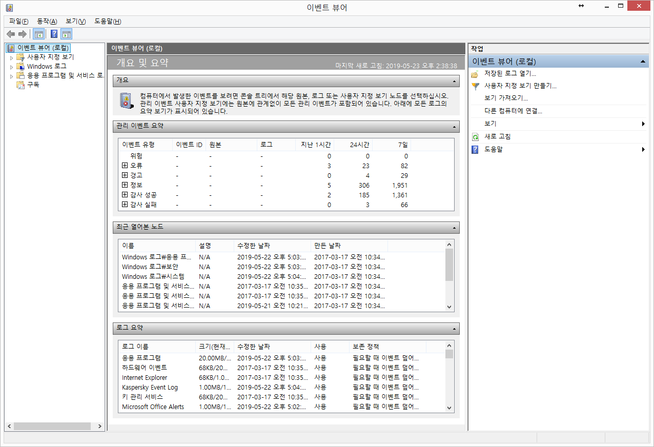 2. 이벤트 뷰어 확인
